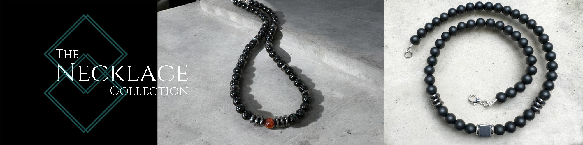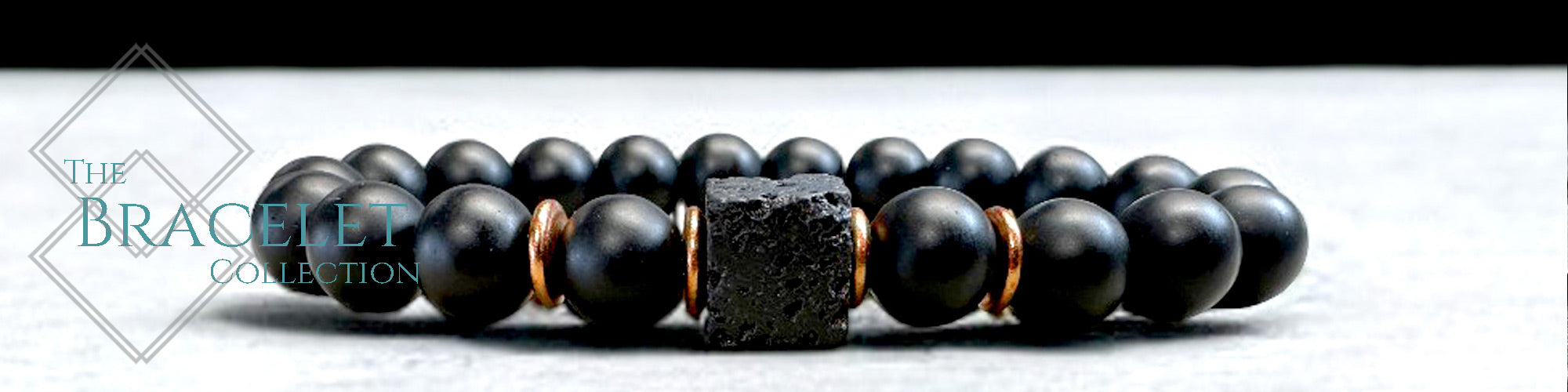 Sleek Men's Necklace Matte Onyx Lava Cube And Copper 8mm
